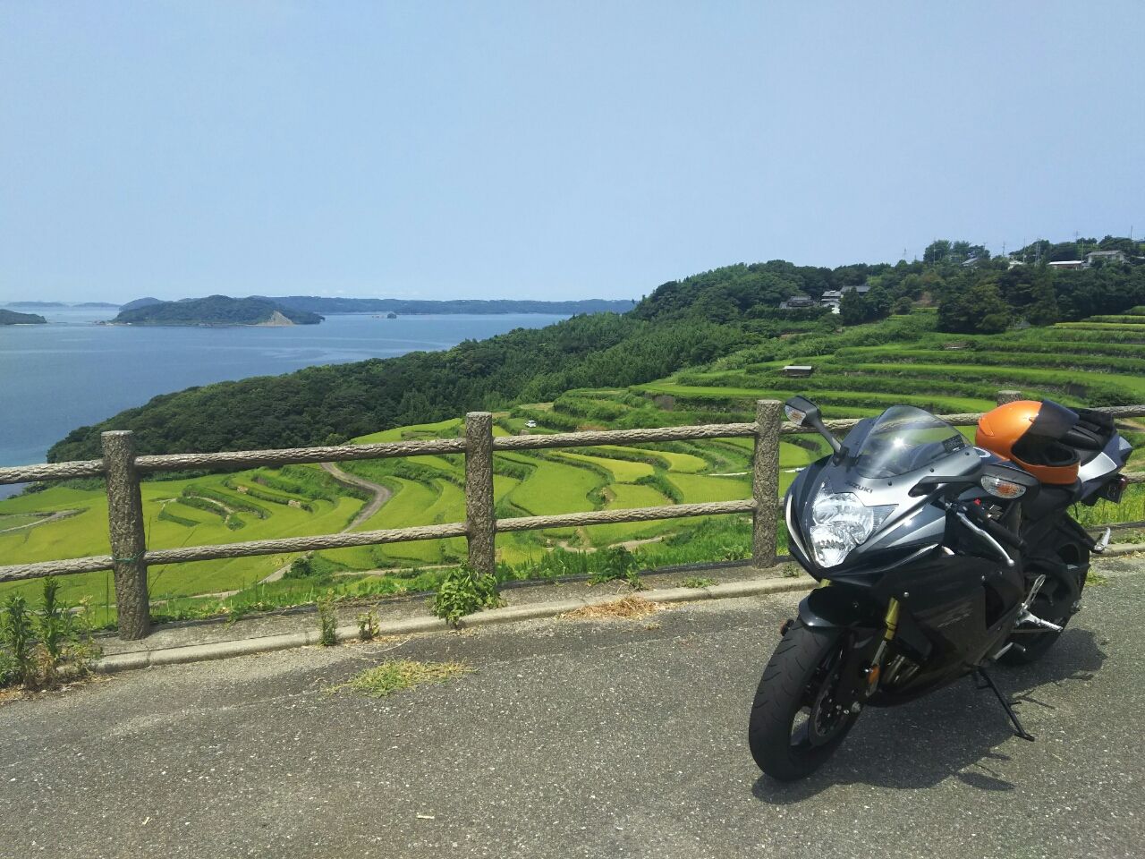 棚田とGSXーR750