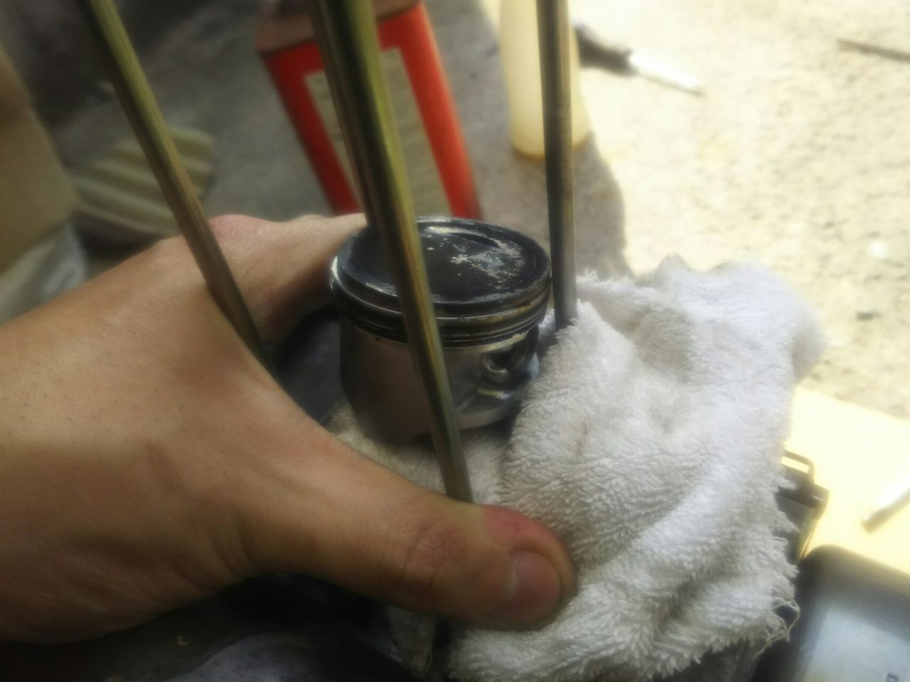 ピストンのサークリップがウエスの折れ目に落ちたので、ウエスを広げてサークリップを取ろうとしたら