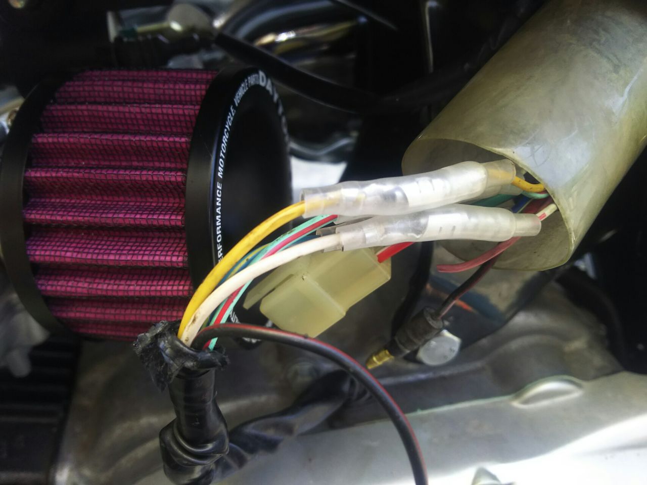 ハーネスのコネクタ形状が違うのでギボシで接続です