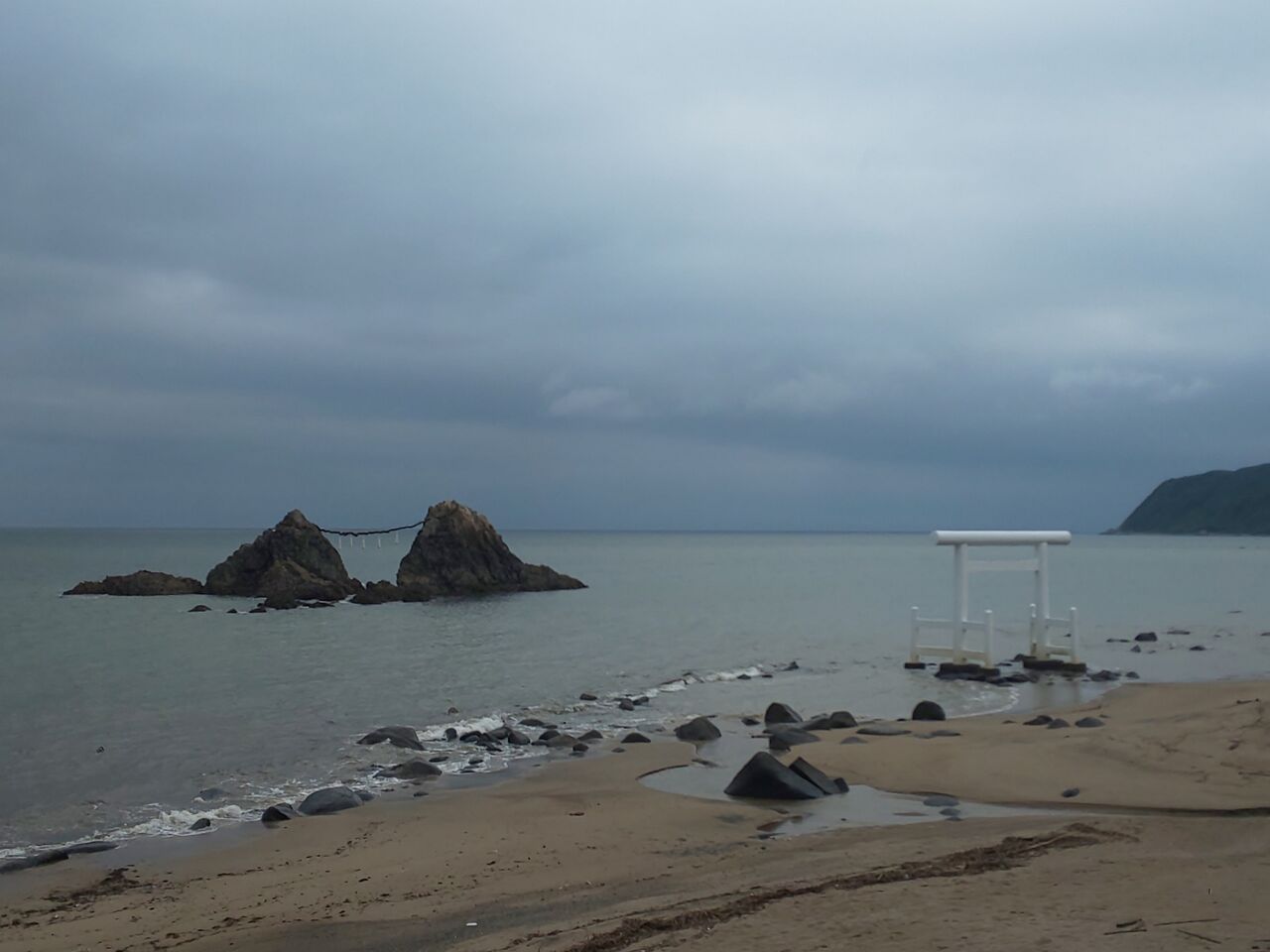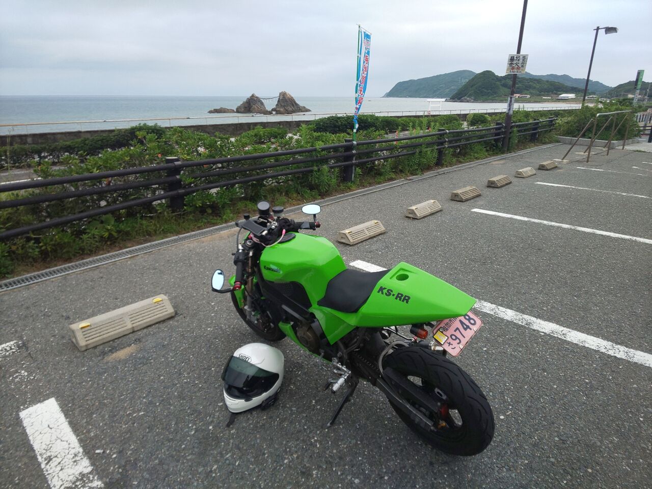 普段はバイクがわんさかいる夫婦岩でコーヒーブレイクを入れますが、雨予報&7時前だったのでさすがに誰もいないw\(^o^)/