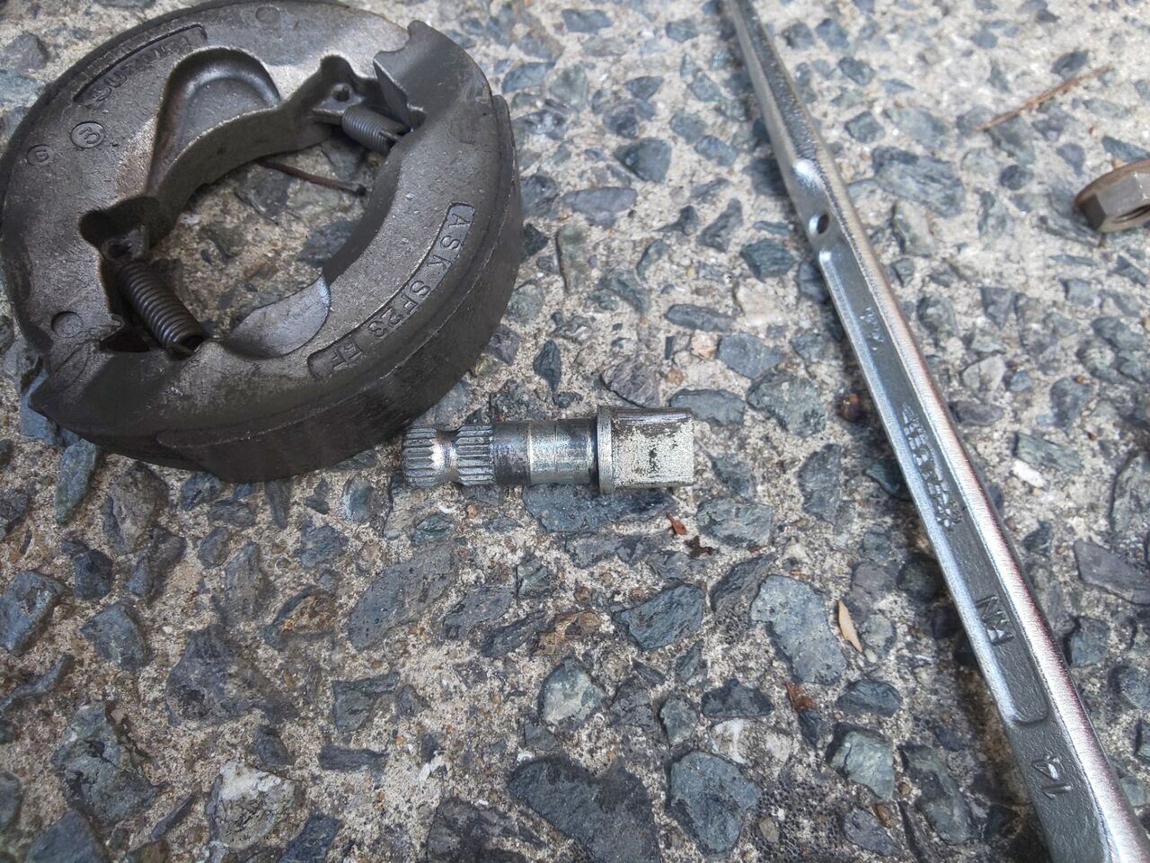 ブレーキシューのカムとの辺り面にガッツリ凹みができてます