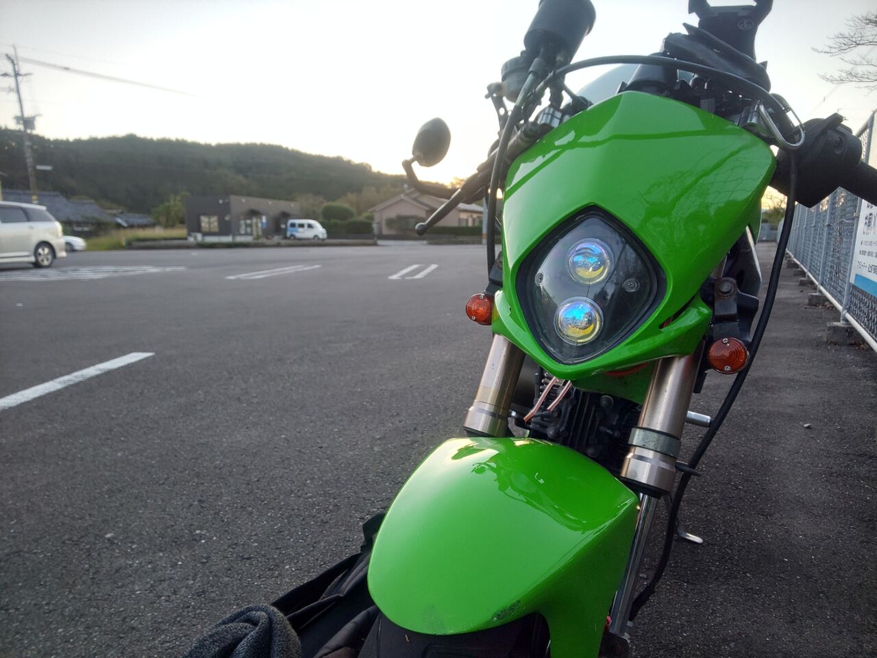 バイク単体で見るとちょっと間延びした印象ですが、人が乗ってる姿は純正長よりもしっくりくる見た目になってました\(^o^)/