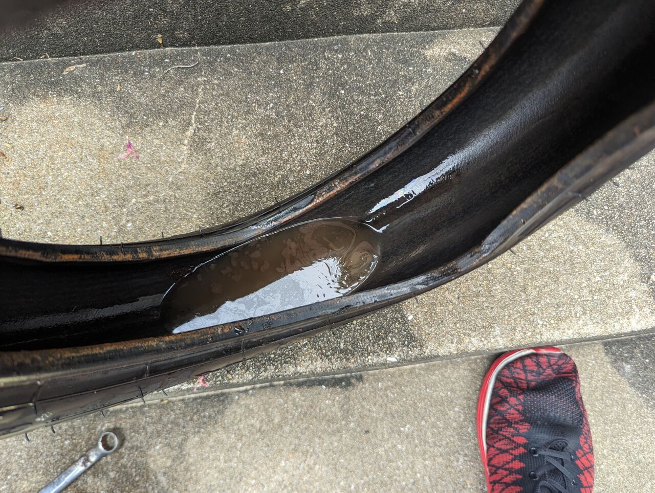前輪も同様にどちらも交換したんですが、前輪は何故か外したタイヤに水が…w/(^o^)\