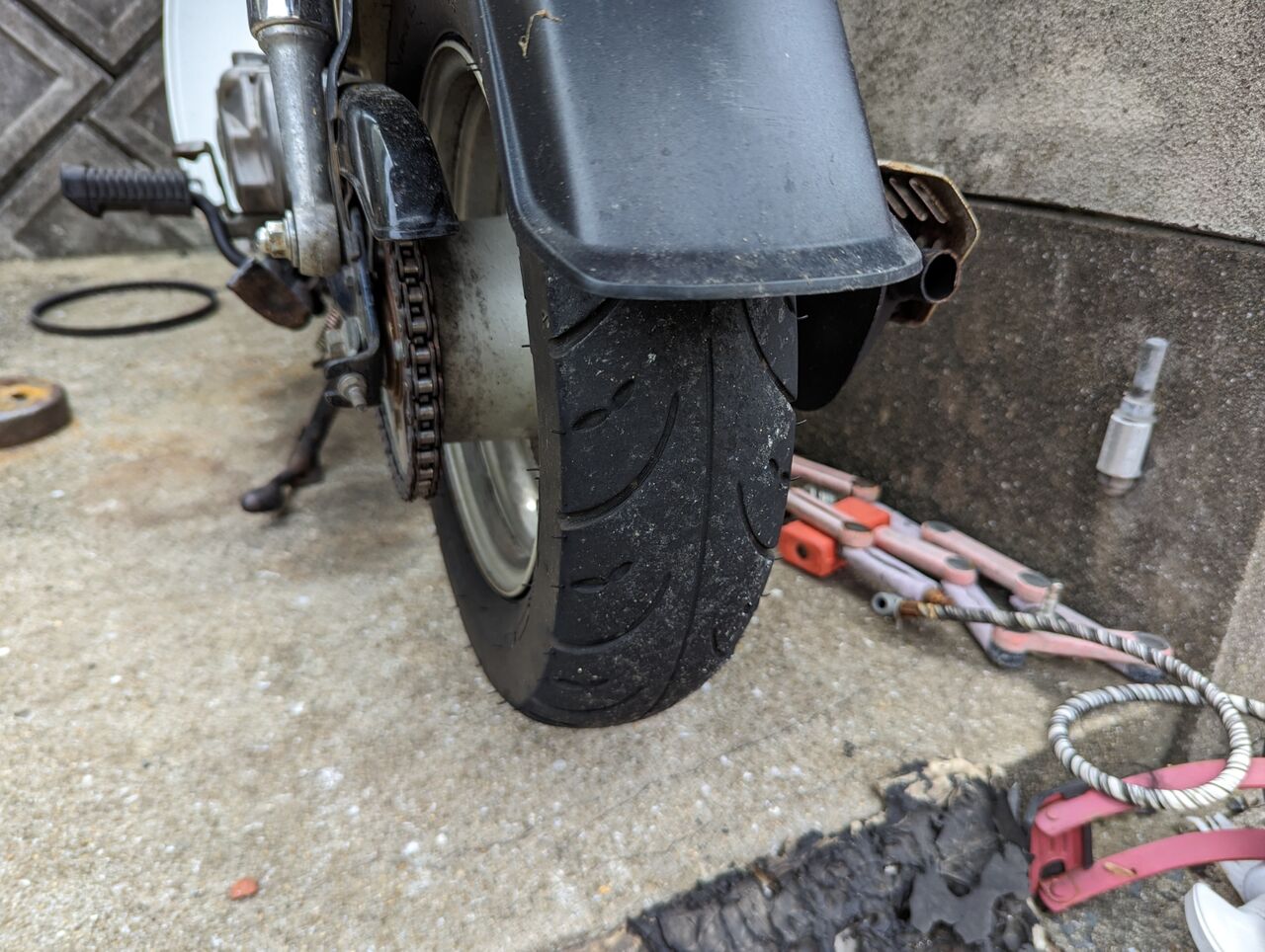 そもそも後輪がツルツルになってるのでそこら辺を交換します