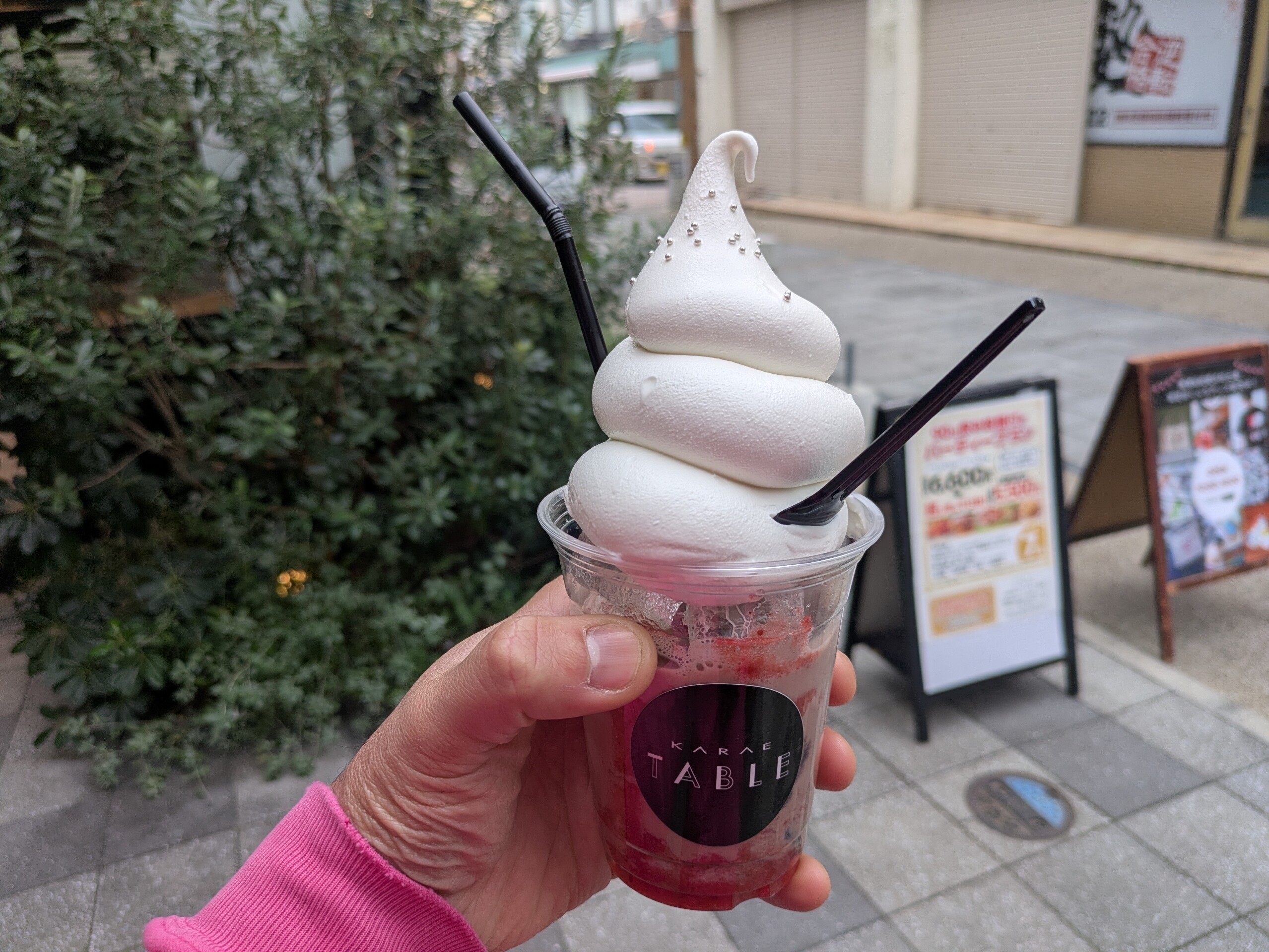 んで、そのまま朝行列ができてたカラエテーブルへ行ってみたら2組待ちまで解消してたので並ぶことにしました