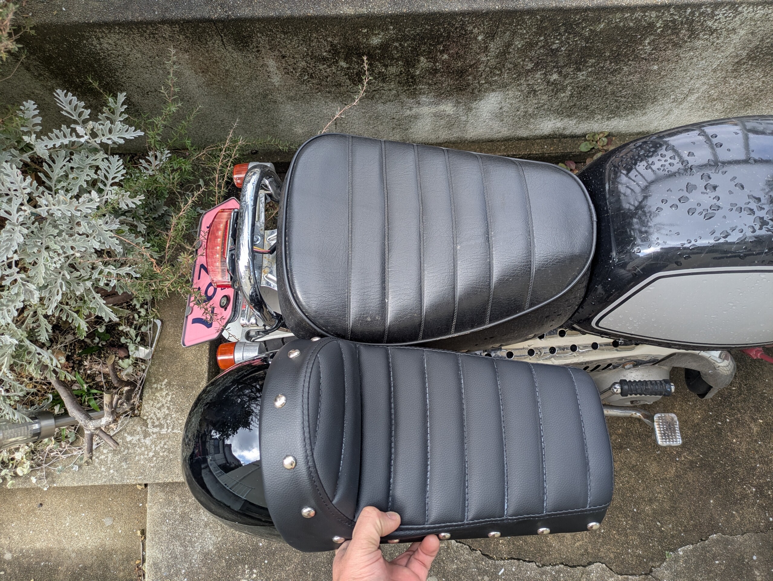 てことで、カフェレーサー化にむけてとりあえずシートを買ってみました😃