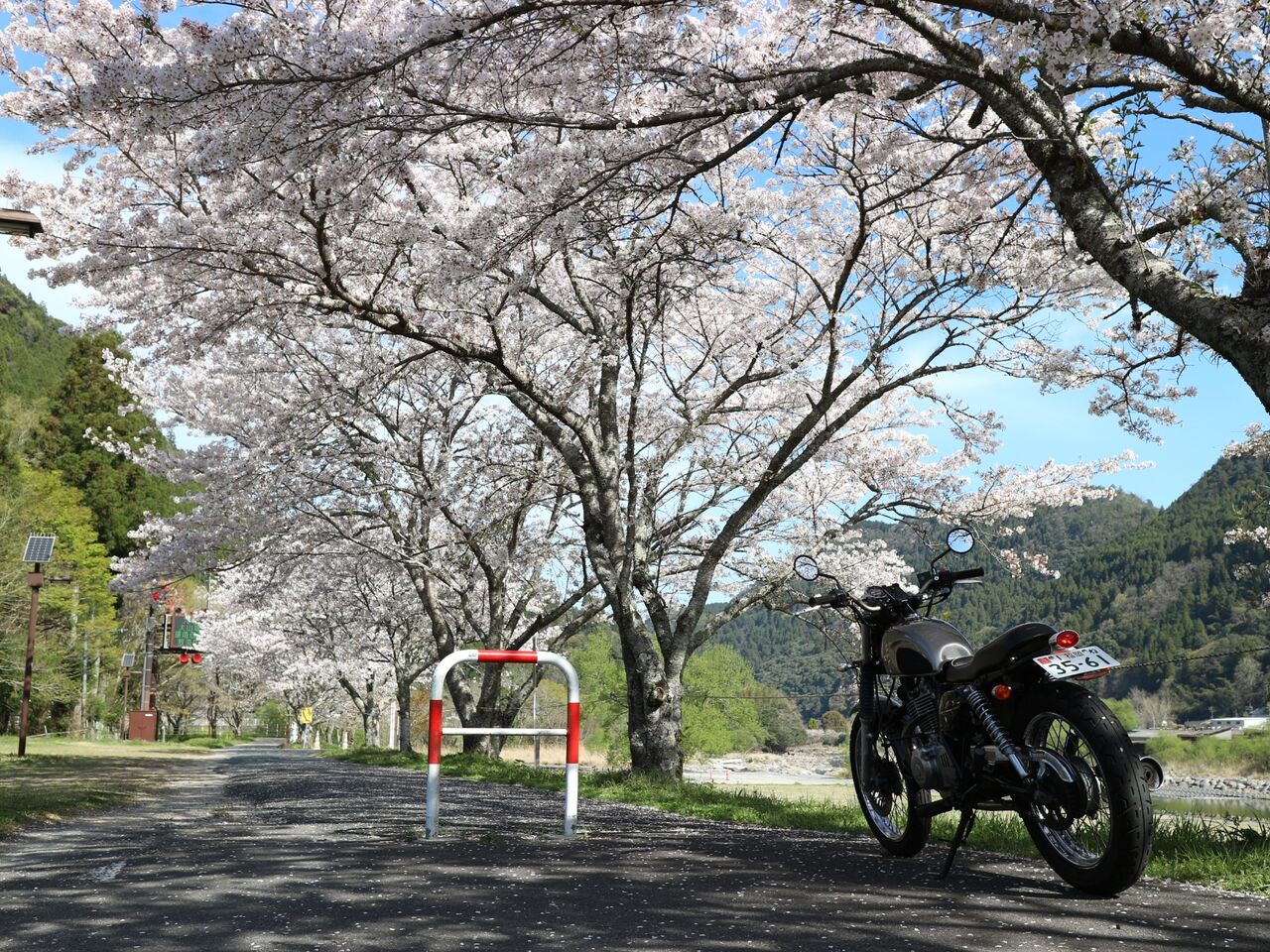 青空と桜とバイク