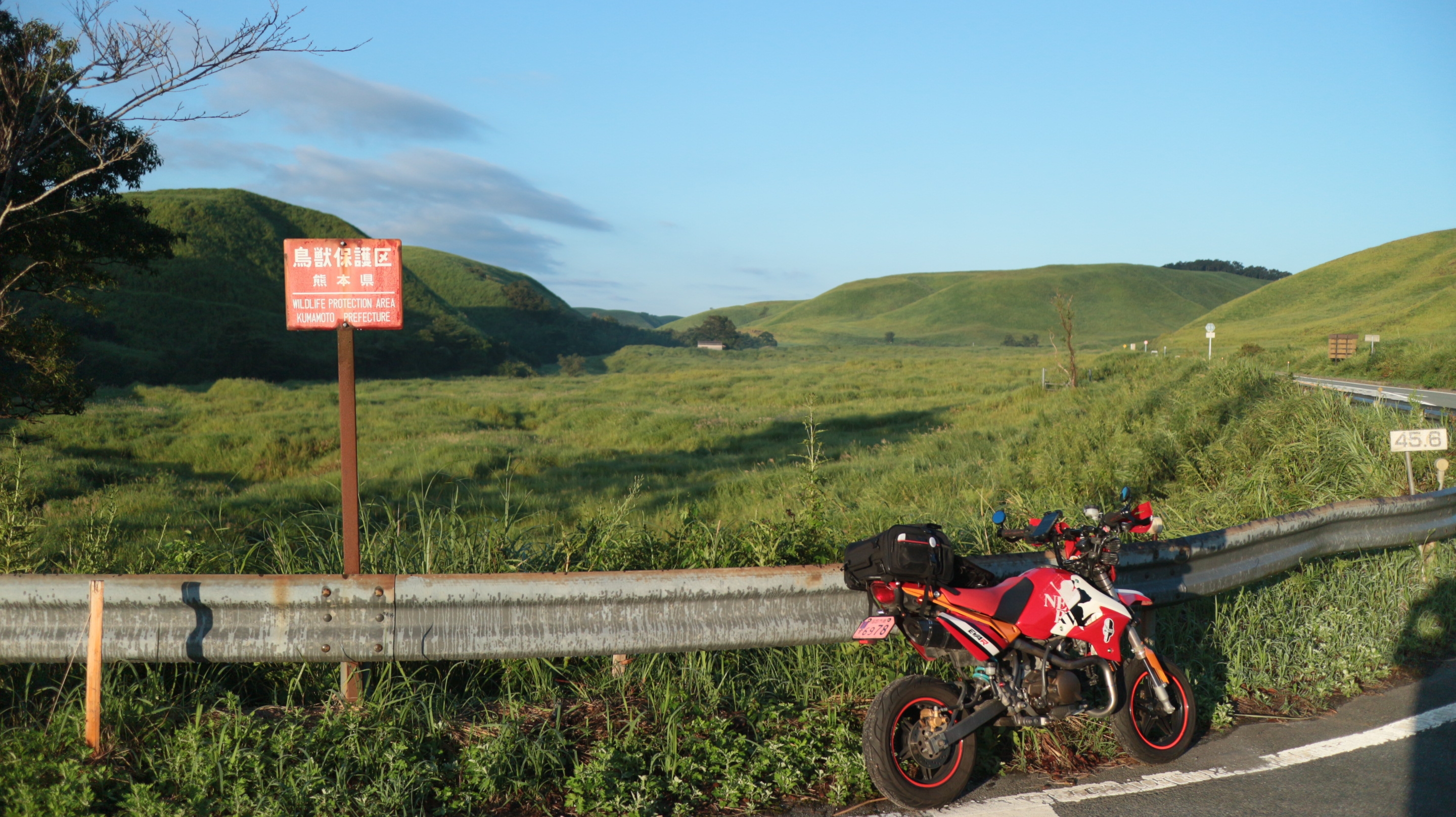 この時点で5時くらいでしたが、バイクが阿蘇方向へガンガン走っていきますw