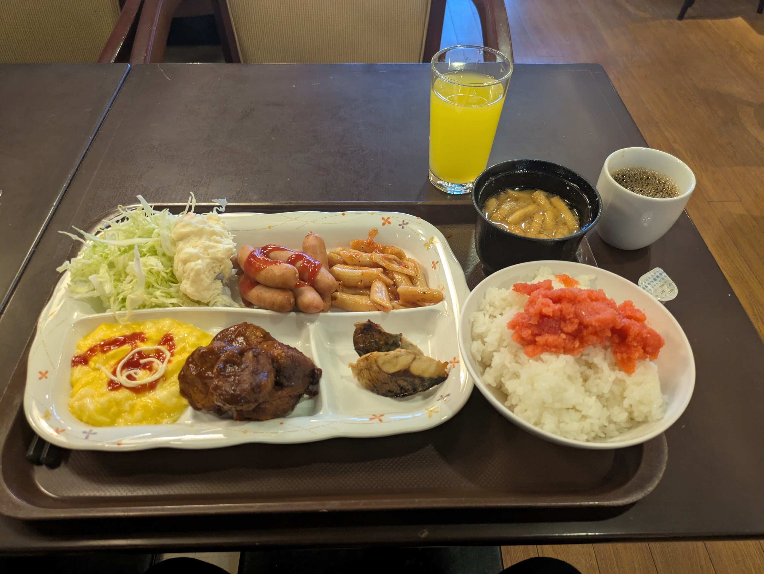 二泊目の宿はAZホテルだったので、朝は朝食バイキングで明太子どッちゃりご飯と洒落込む\(^o^)/