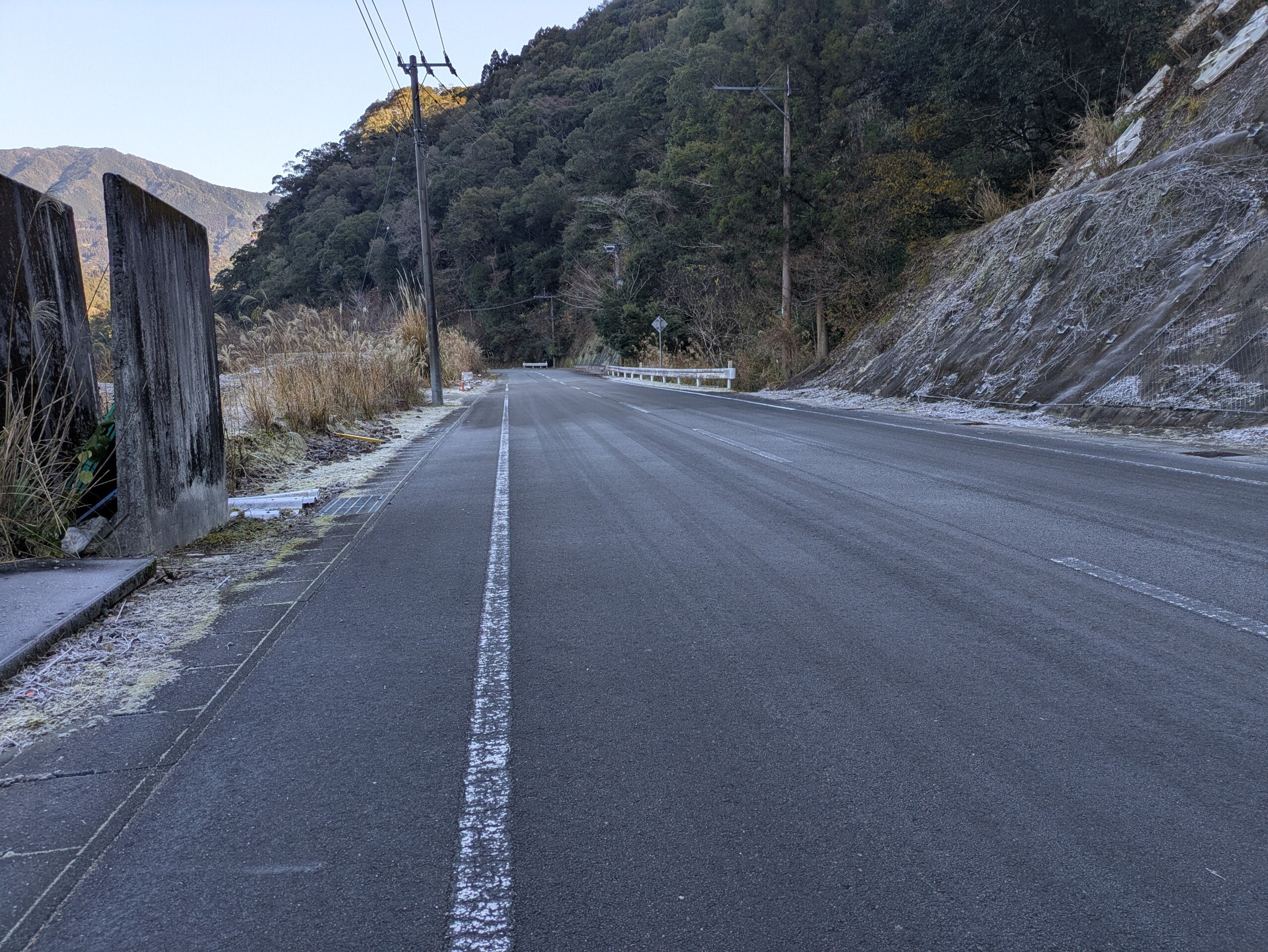 山の上の方では数キロ凍結してる区間もありました…w