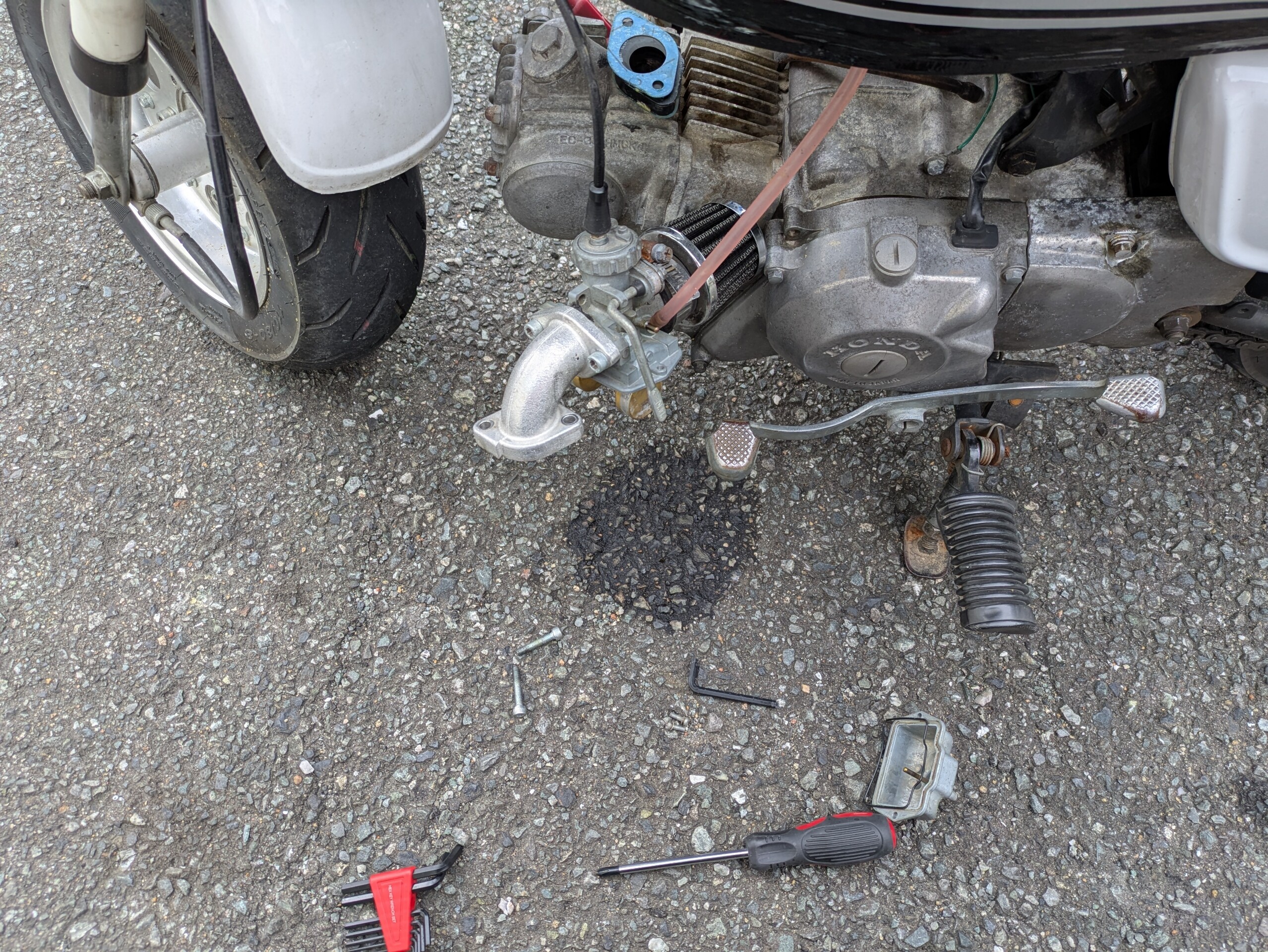 一応タンクはガソリンですすいでから組んだのですが、ゴミが取り切れてなかったようでキャブがオーバーフローw/(^o^)\