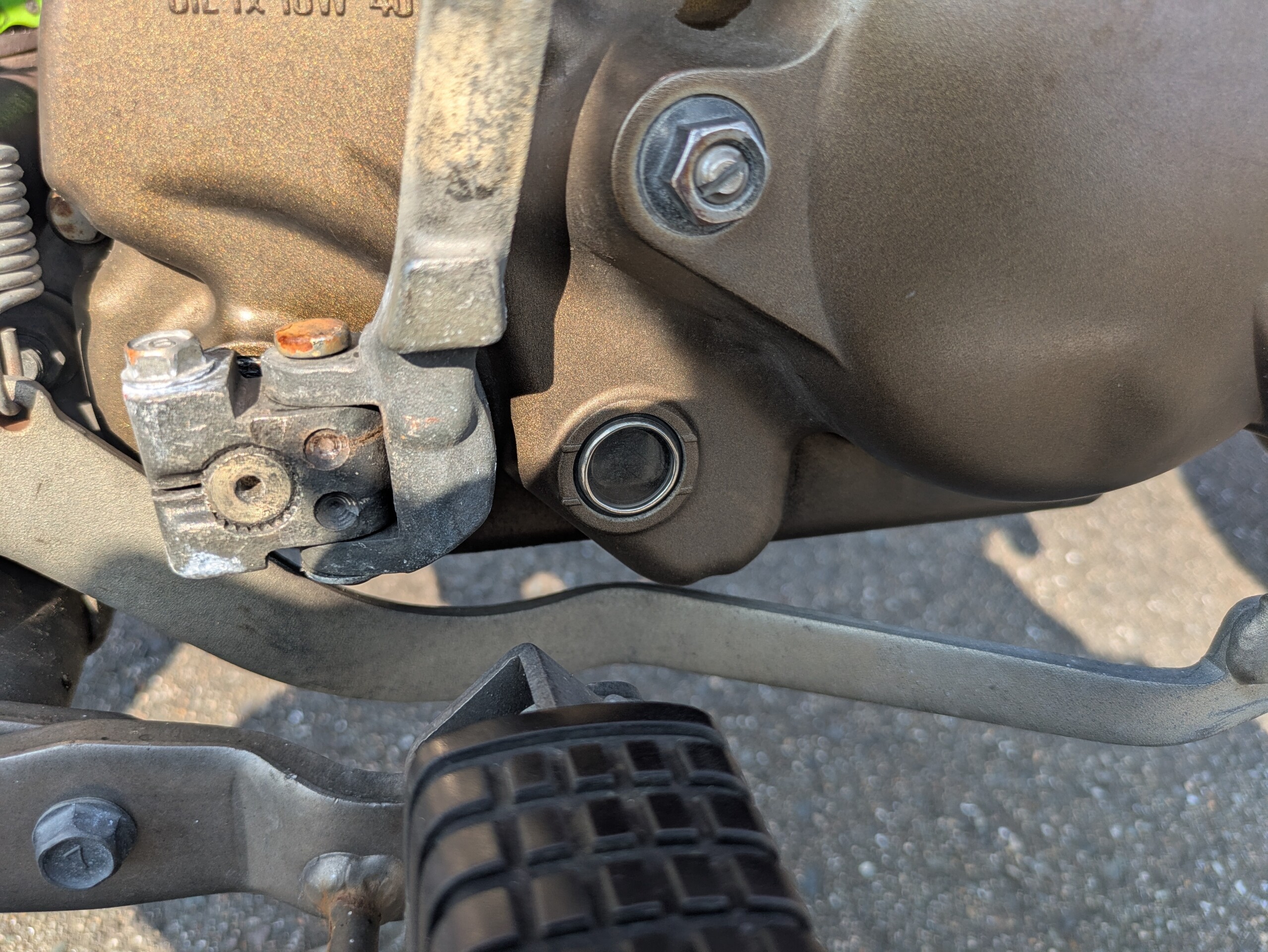 そんで明くる日、ツーリング中に何気なくオイル窓を覗くと、オイルが下限値を切ってるw/(^o^)\