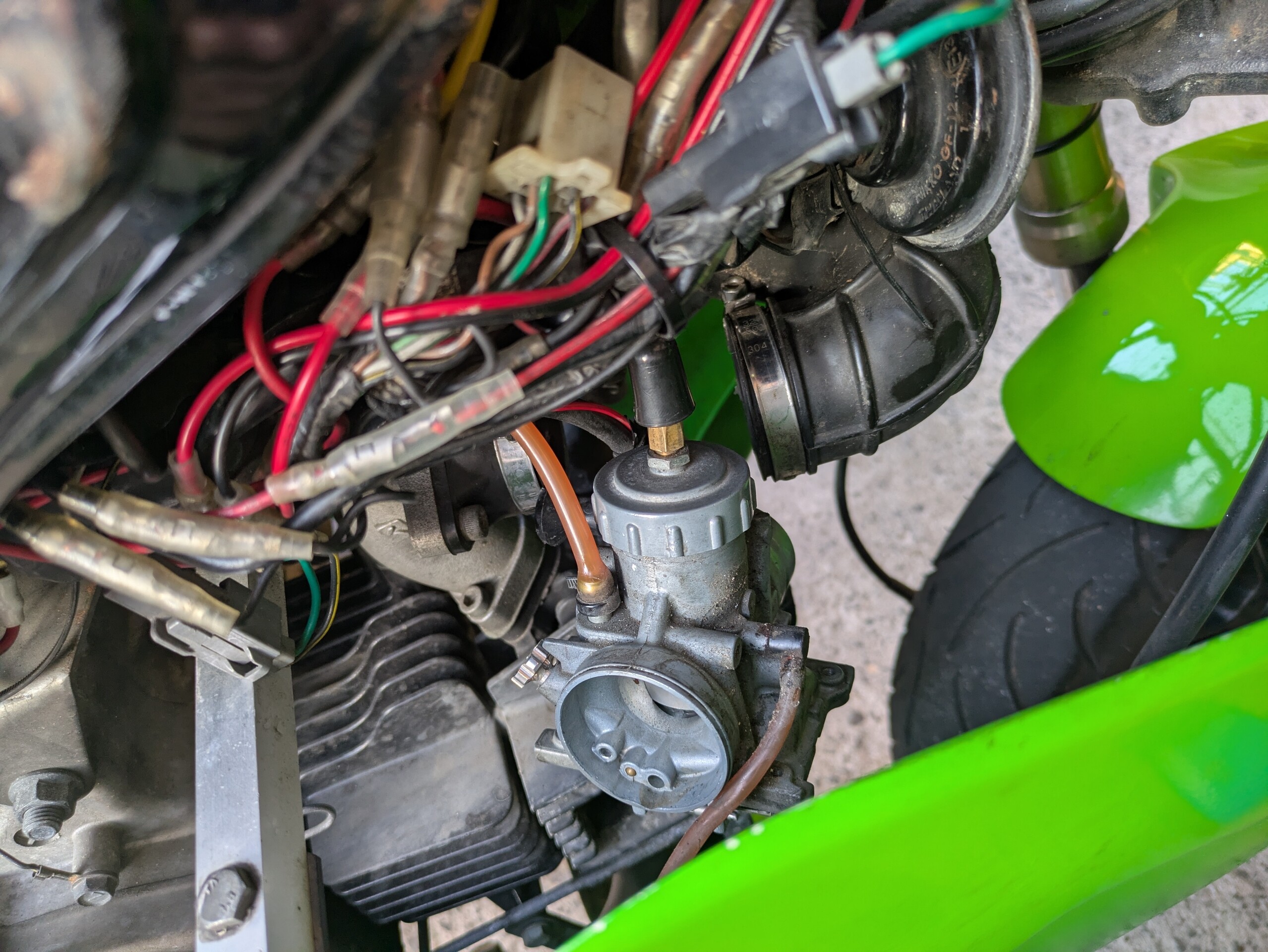んで帰宅して、山道で開け開けで走ってるとアクセルのオンオフでグズつくことがあったのでスロージェットを小さくしてみました😃
