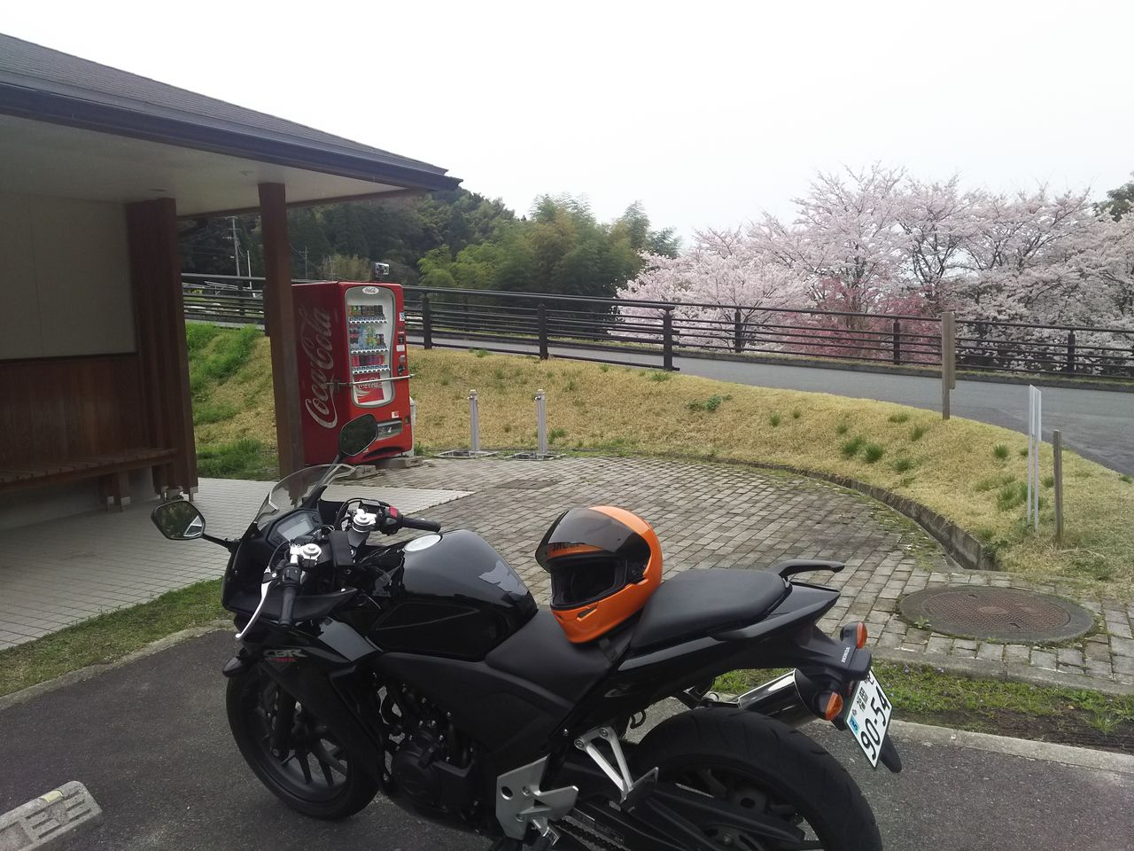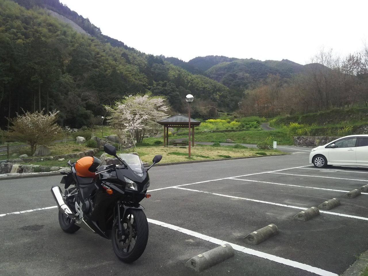 グネグネから東背振トンネル方面へ戻ったところにある桜がきれいな公園でコーヒーブレイク