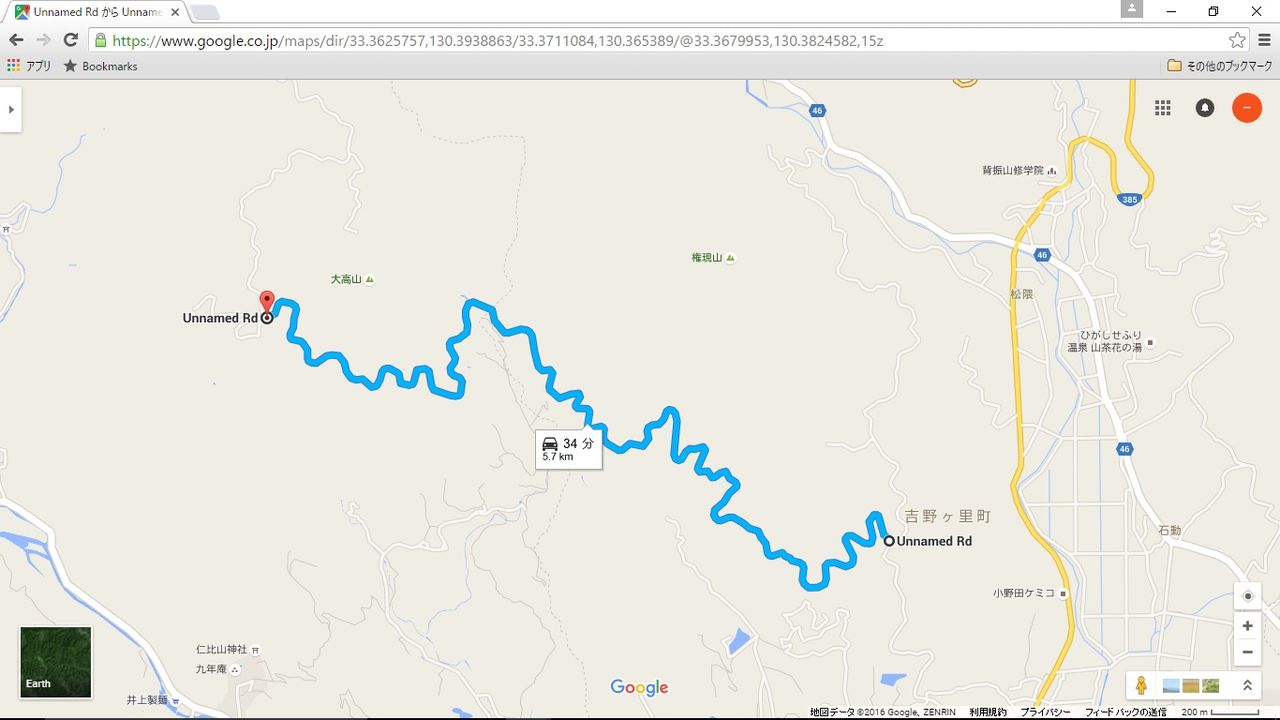 上の画像がそのKSR110で走って楽しかった道なんですが、こうしてみるとすごいぐねぐね