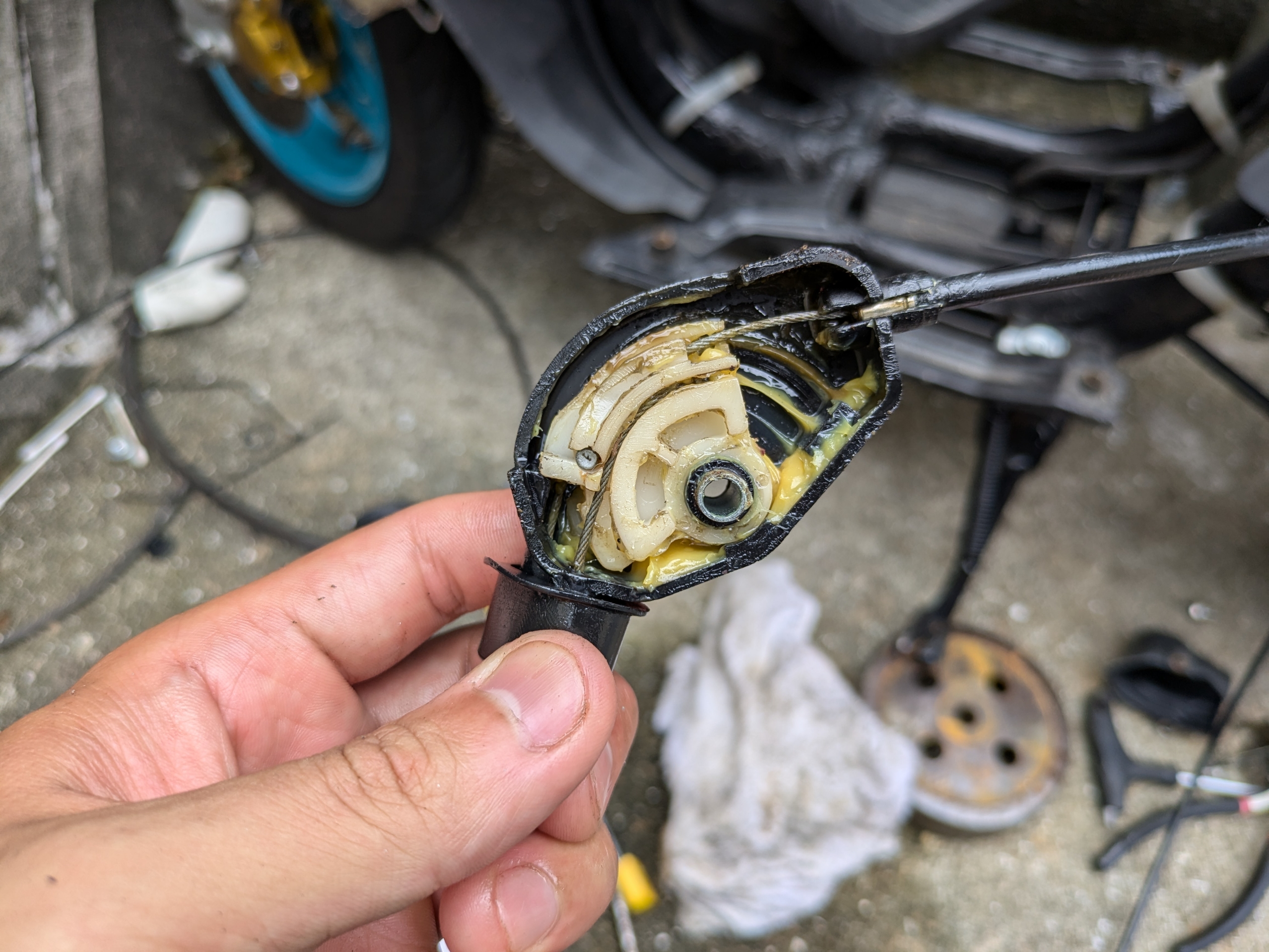 その前に、スロットルワイヤーがめちゃくちゃ重たいので交換してみます