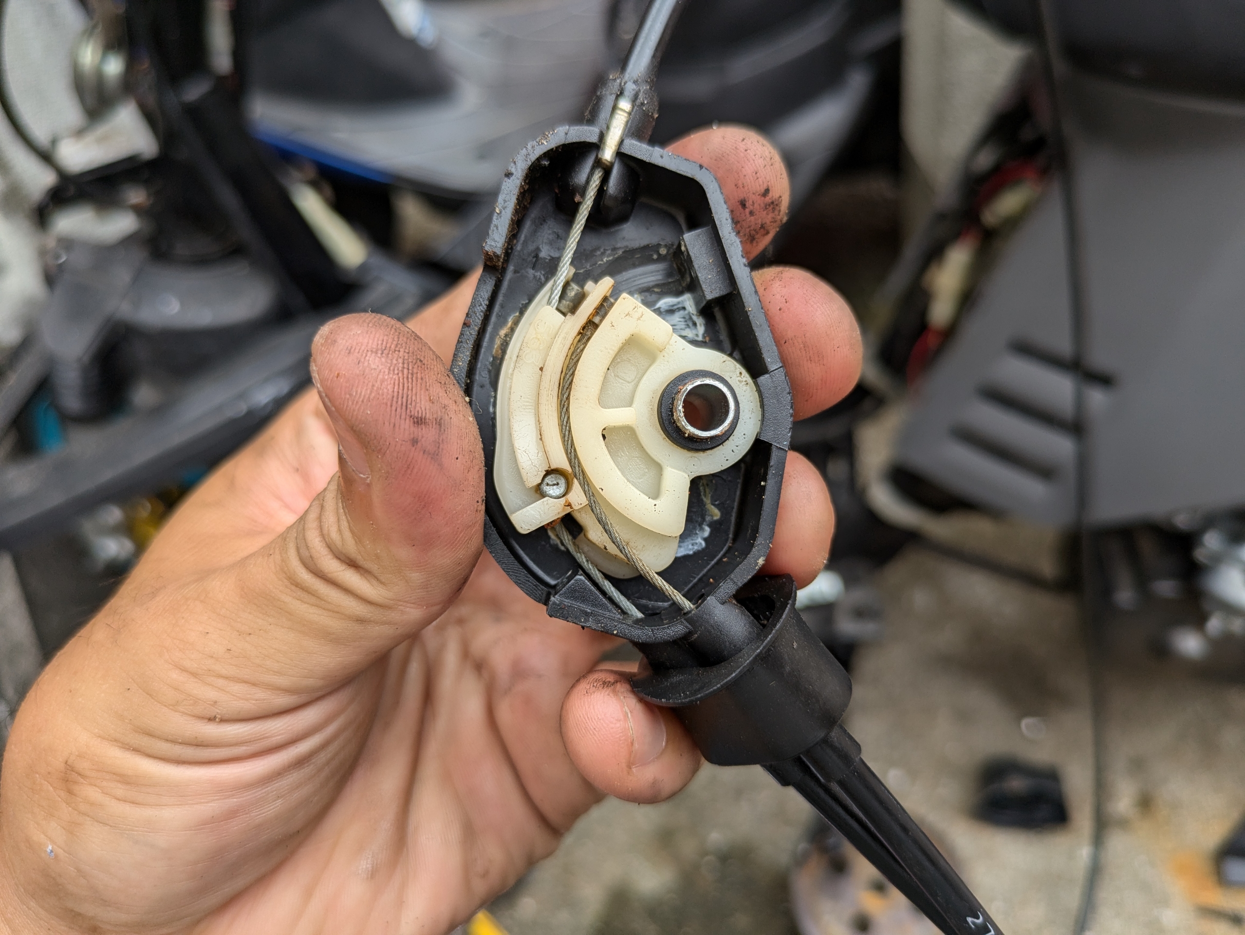 んで、スロットルが重たいのがオイルポンプを引っ張るからだと思ってたんですが、オイルポンプからワイヤーを外して引っ張ってみたら変わらず重たいw\(^o^)/